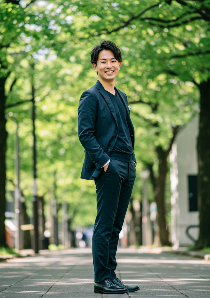 縦構図で被写体が中央にくるようにバストアップと全身写真の撮影をお願い致します。
