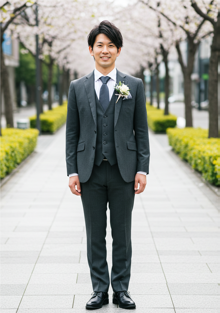 ・ネクタイが曲がっている、シャツのスソが出ているか、エリがよれていないか、ジャケットポケットのフタが出ているか等、充分に確認し撮影を挑むようお願い致します。